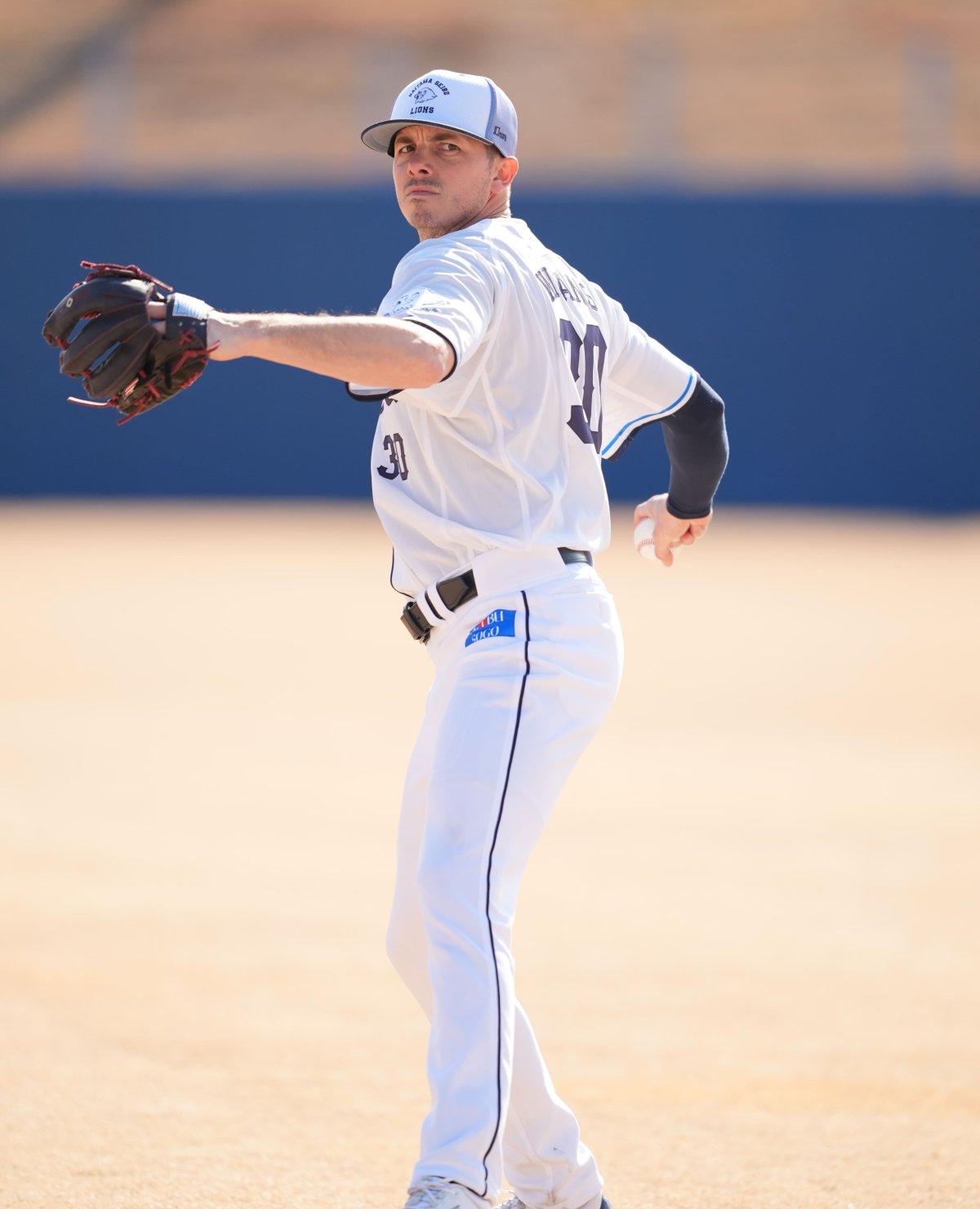 彼とは初めてのチームメートですが、とても良い人です。まだ実際に試合で投げているところは見てないですが、映像では見たことがあり、ピッチャーとしての能力も高く、良いピッチャーです。